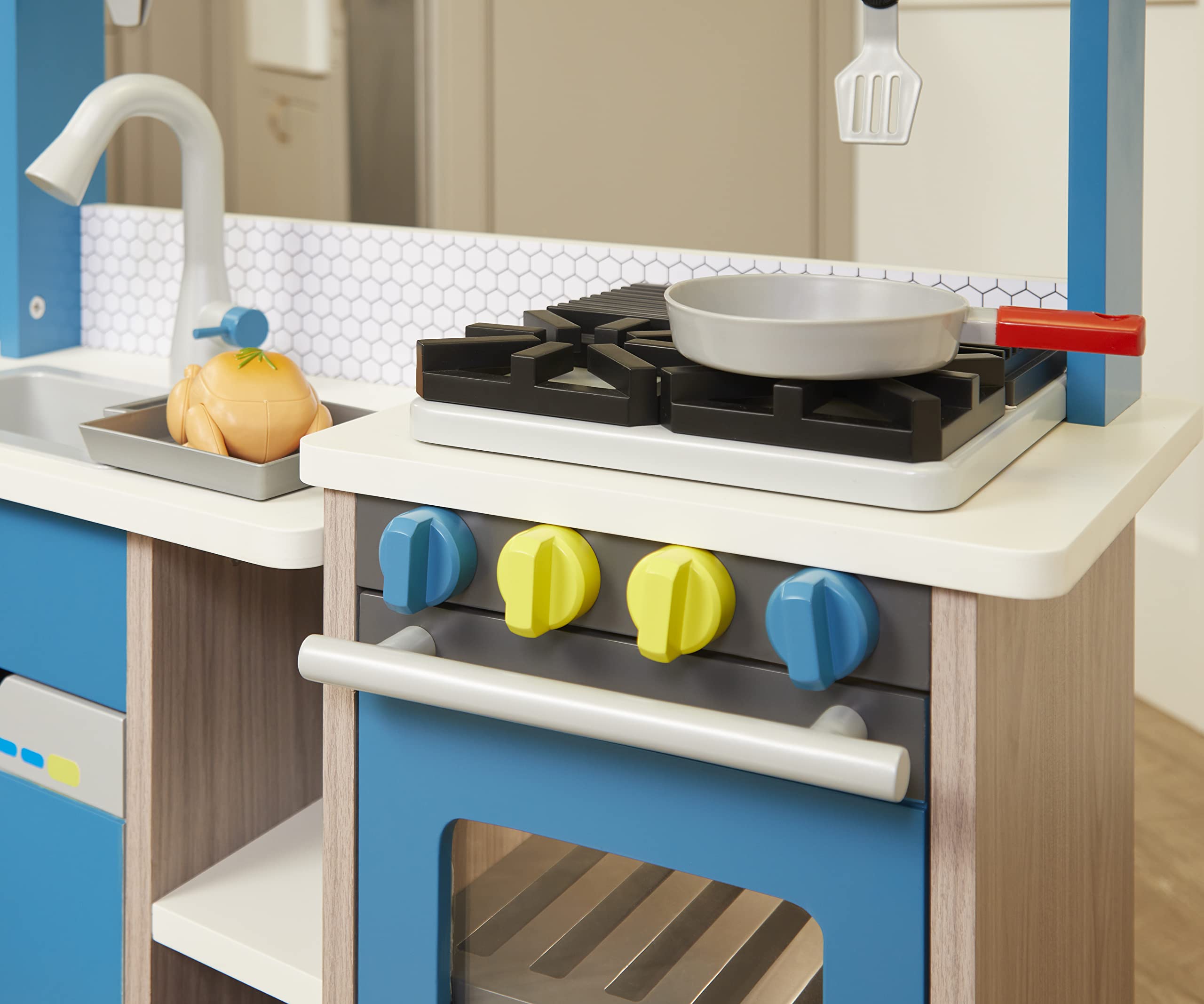 - 12+ ACCESSORIES INCLUDED – Pot, Pans, Butcher Block, Play Food and more