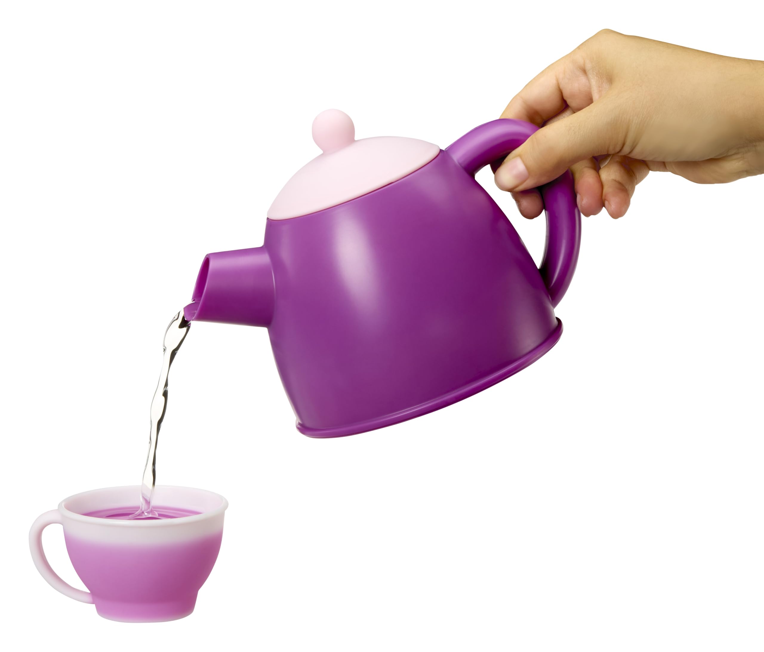 - COLOR-CHANGING CUPS. Pour cold water in the teacups for a color change that mimics brewing tea.